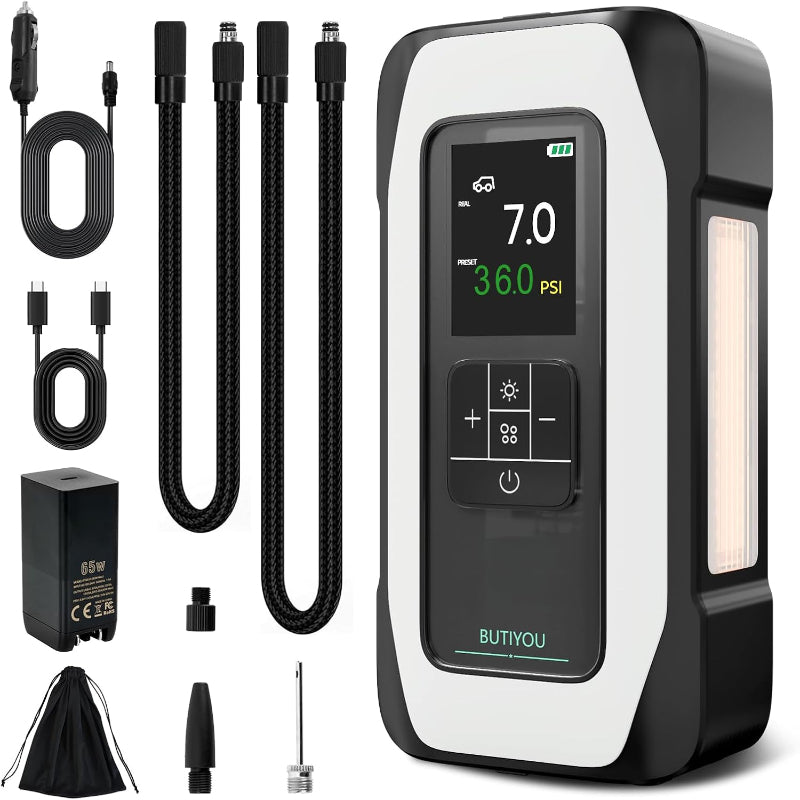 Smart Air Pump with Dual Cylinder,Clourful Digital Sceen,Atuo Stop,150PSI Electric 16000mAh Cordless 12V Corded Dual-Use